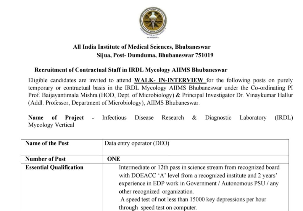 AIIMS Bhubaneswar Data Entry Operator Recruitment 2026 – Criteria