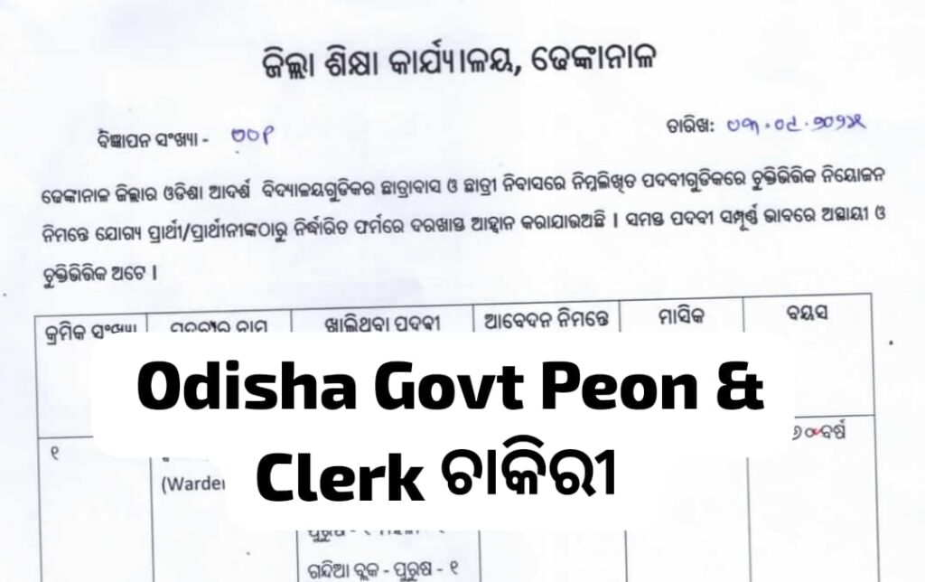 Odisha Govt Peon & Clerk Recruitment 2025 – Vacancy Details