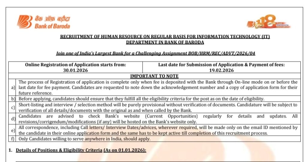 Bank of Baroda IT Posts Recruitment 2026 – Eligibility Criteria