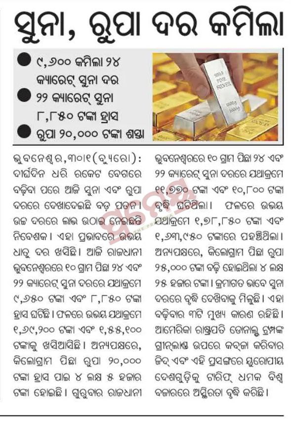 Gold and silver prices fall. After a sharp increase in prices, gold and silver prices have fallen. 24-carat gold prices fell by 8,230. 24-carat gold prices have fallen by 170,620 rupees per 10 grams. 22-carat gold prices have fallen by 7,550.
