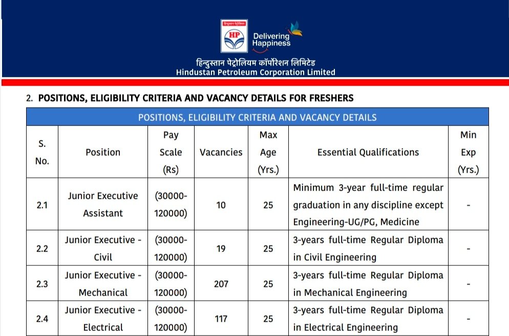 HPCL Fresher & Experienced Recruitment 2026 – Eligibility Criteria