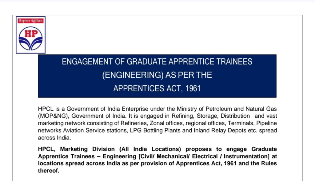 HPCL Graduate Apprentice Trainees Recruitment 2026 – Overview
