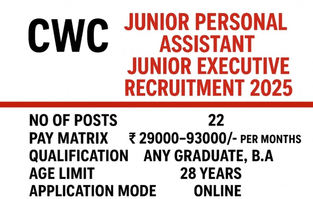 CWC Junior Personal Assistant, Junior Executive Jobs Vacancy 2025 – Eligibility Criteria