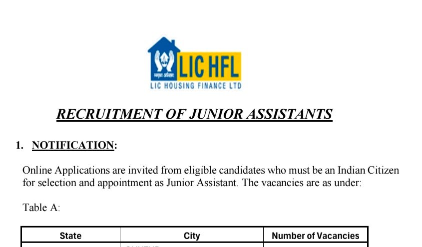 LIC Housing Finance Limited Juniors Assistant Recruitment 2026 – Eligibility Criteria