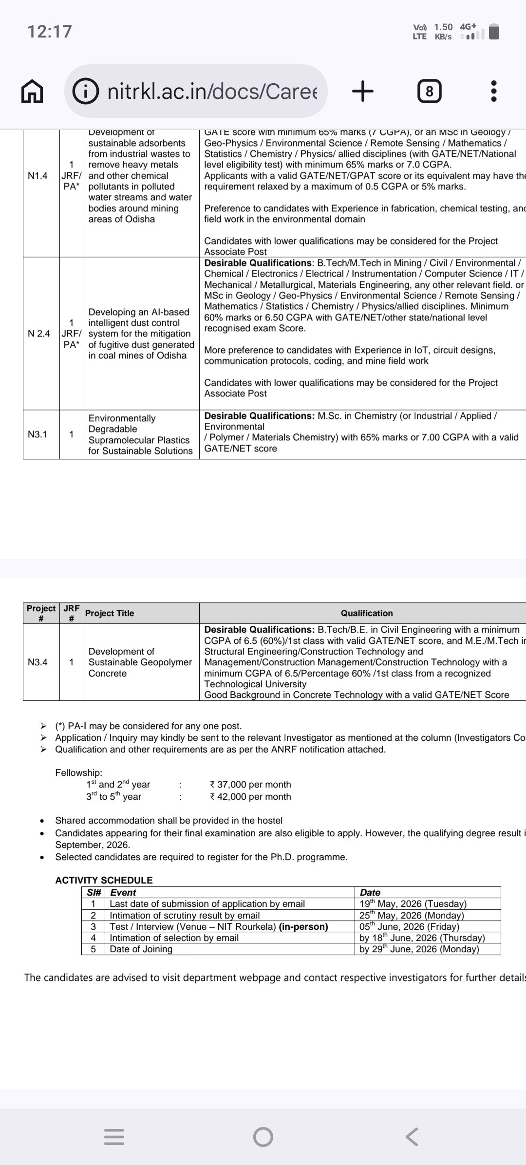 NIT Rourkela Junior Research Fellow (JRF) Recruitment 2026 – Eligibility Criteria & Details