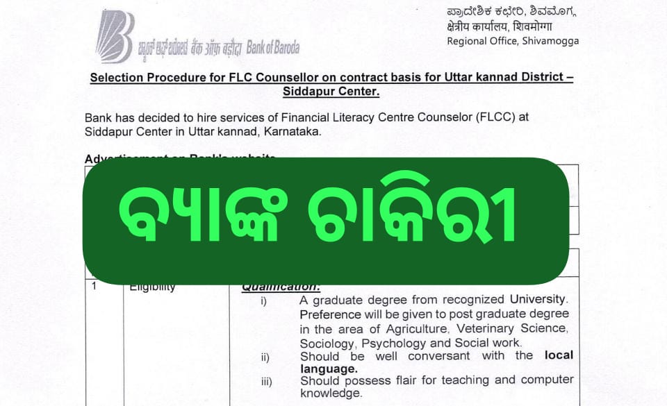 New Bank Jobs from Bank of Baroda. This time you can apply offline. Job opportunity for the post of FLC Counsellor. Limited Vacancy is available. All India Candidates can apply, both male and female. Age limit and educational qualification are minimum. How to apply, what is the last date, Important Documents and read till the end for complete details.