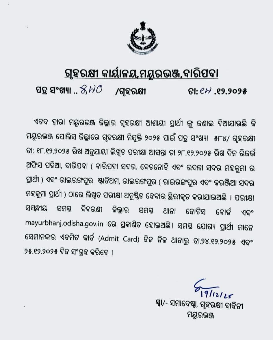 | Admit Card | ସଂଗ୍ରହ: (ନିଜ ଥାନାରୁ) |