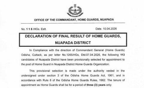 The final result of Home Guards Enrollment 2025 for Nuapada district has been officially released. Candidates can check their selection status in the published list and follow further instructions regarding training, document verification, and joining procedures as notified by authorities.