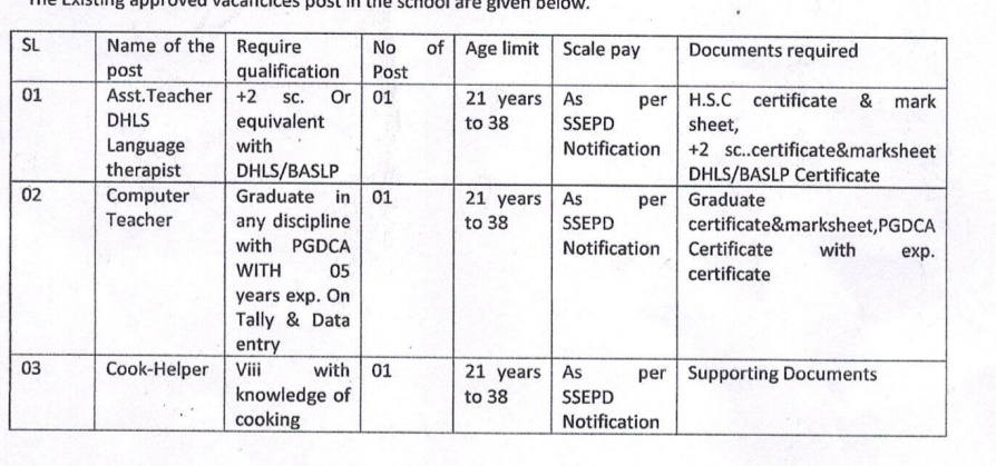 - Post Name – Computer Teacher, Cook Helper, Asst. Teacher