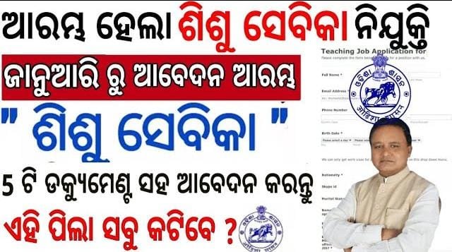 Recruitment : Sishu Sevika (Childcare Assistant) for Sishu Batika (Pre-primary / Early Childhood Education Centers) in Odisha