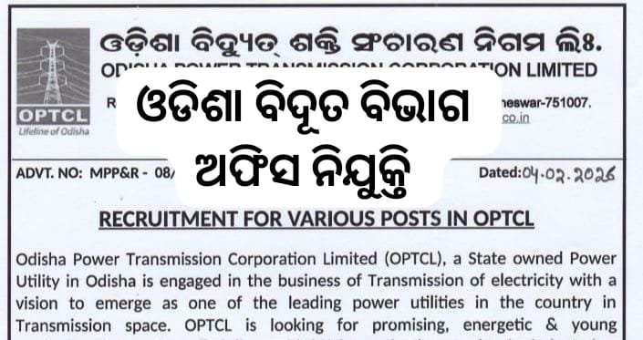 Odisha Power Transmission Corporation Limited (OPTCL) has released a recruitment notification for the post of Medical Officer under Advertisement No. MPP&R-07/2025-26. Candidates having an MBBS degree from an MCI-recognized university and belonging to Odisha are eligible to apply. The maximum age limit is 67 years as on 01 January 2026. Selected candidates will receive a consolidated remuneration of ₹80,000 per month with a 3% annual increment, or Pay minus Pension in case of retired Government doctors. The number of vacancies is not specified. Interested and eligible candidates must submit their application on or before 27 February 2026 (5:00 PM). For detailed information, applicants are advised to visit the official website www.optcl.co.in.
