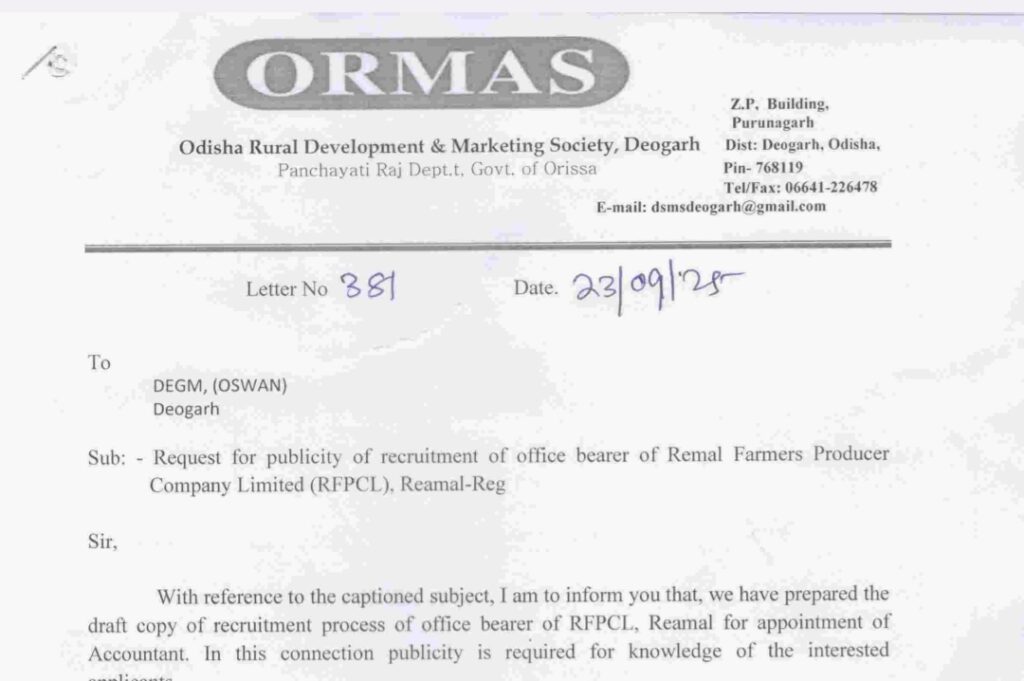 Odisha Rural Development and Marketing Society (ORMAS) has released a recruitment notification for the post of Accountant. Candidates belonging to Odisha are eligible to apply. There is one vacancy available for this position. The selected candidate will receive a monthly salary of Rs. 9,000/-. The selection process will be conducted through an interview. Interested and eligible applicants must submit their applications before the last date, which is 04 October 2025. This is a great opportunity for individuals seeking accounting jobs in government organizations. For more details and application guidelines, candidates can visit the official website at deogarh.odisha.gov.in.