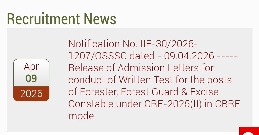 The Odisha Sub-Ordinate Staff Selection Commission released the OSSSC Forester Admit Card 2026. Candidates can download it online and must carry it with valid ID to the exam center.