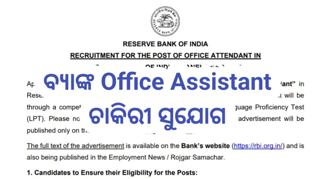 The Reserve Bank of India (RBI) has released an official notification for the recruitment of Office Attendant (Class IV) posts for the year 2025. A total of 572 vacancies are available, and candidates from Odisha, India are eligible to apply. The application process is online only, starting from 15 January 2026 and closing on 04 February 2026. Selected candidates will receive an attractive salary of approximately ₹46,000 per month (gross) along with allowances. The selection will be done through an Online Test followed by a Language Proficiency Test (LPT). The tentative exam dates are 28 February and 01 March 2026. Interested candidates are advised to apply through the official RBI website: https://www.rbi.org.in/.