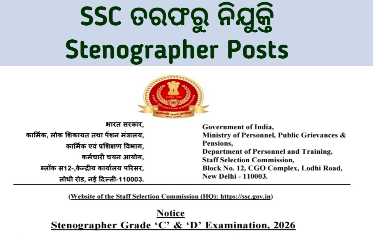 The Staff Selection Commission has announced SSC Stenographer Grade C & D Recruitment 2026 with 731 vacancies. Candidates who have passed 10+2 can apply online until 15 May 2026. The age limit is 18–27 years. Selection includes CBT, stenography skill test, and document verification. Job location is across India. study syllabus, practice mock tests, improve shorthand speed, revise regularly, and focus on accuracy for Staff Selection Commission exams.