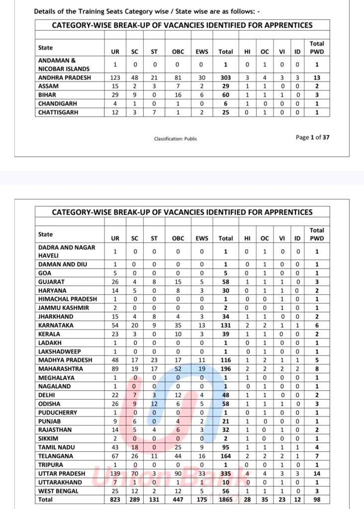 | Total Vacancy | 1865 (including 98 PWD posts) |