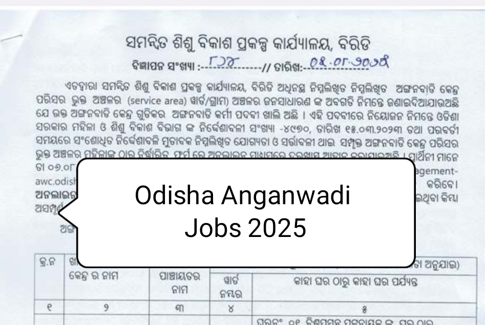 WCD Odisha Anganwadi Worker Jobs Recruitment 2025 – Vacancy Details